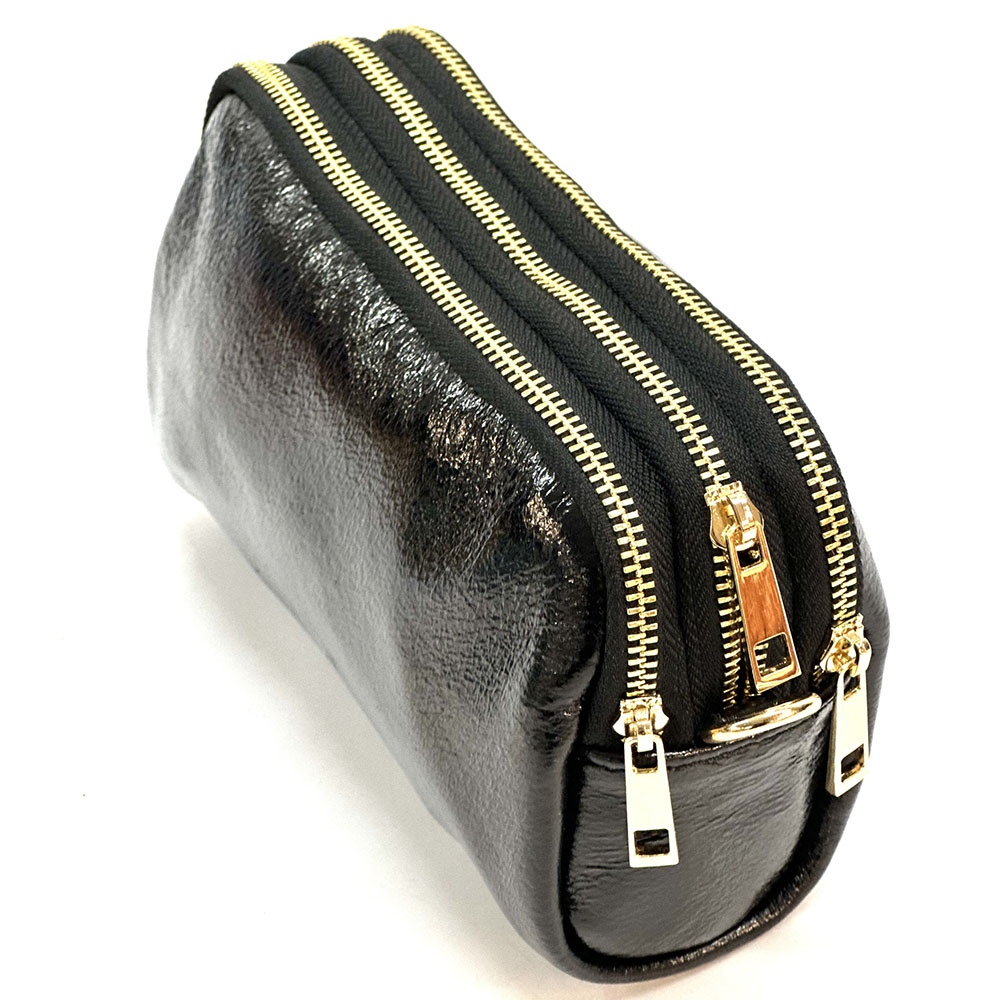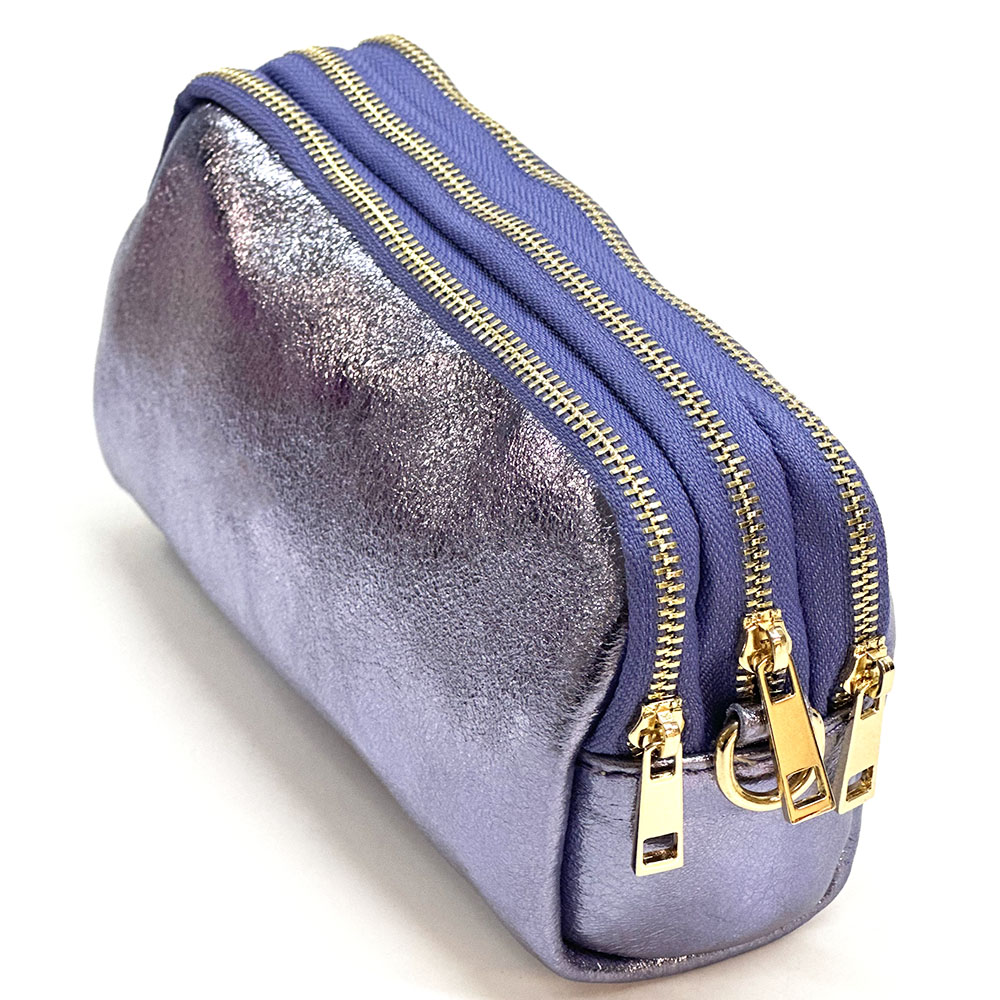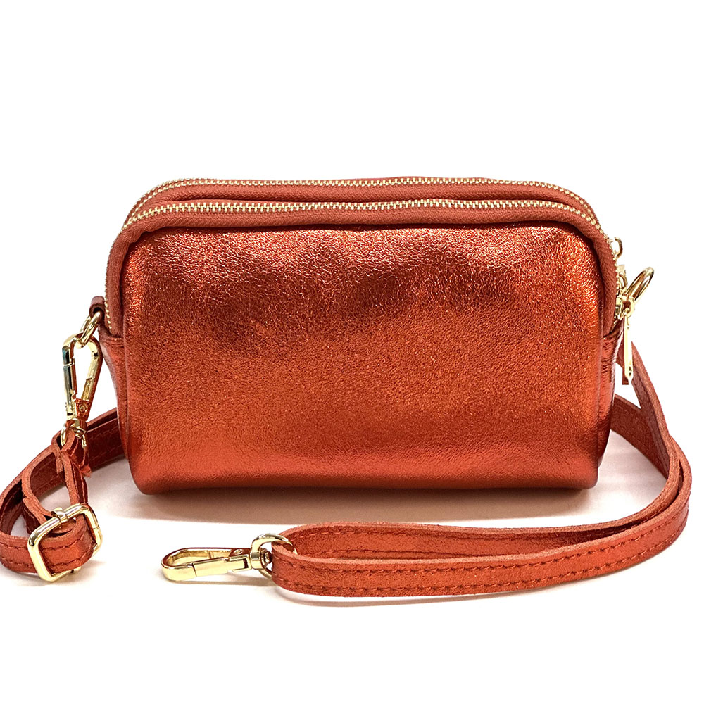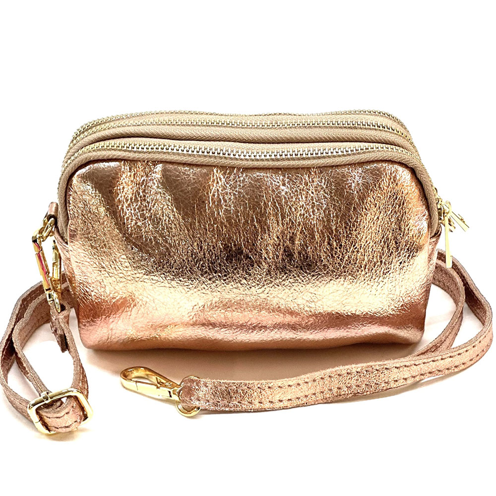 Fermeture principale avec zip. Une petite poche frontale, utilisable comme porte-monnaie, boucles d’oreilles, bagues….