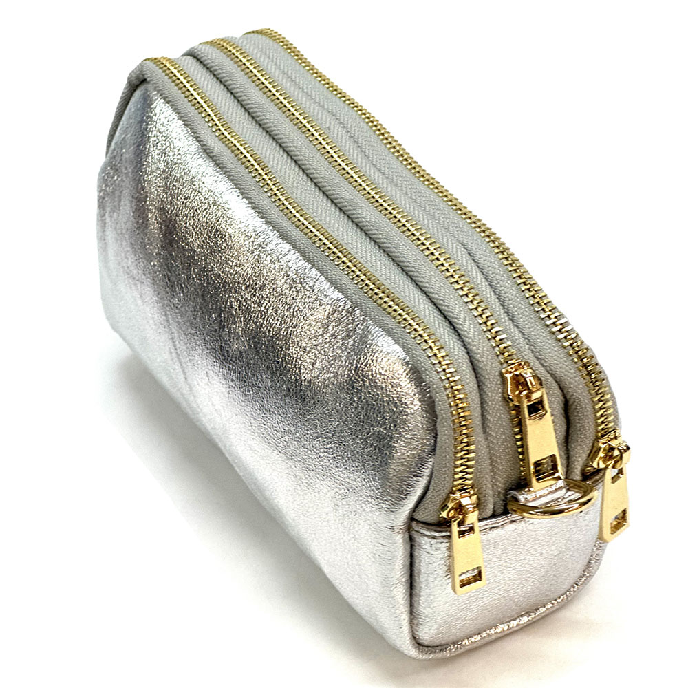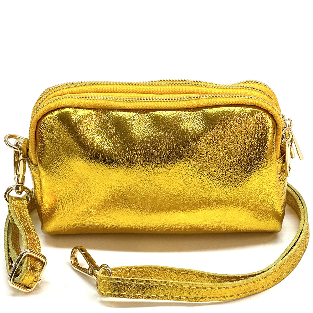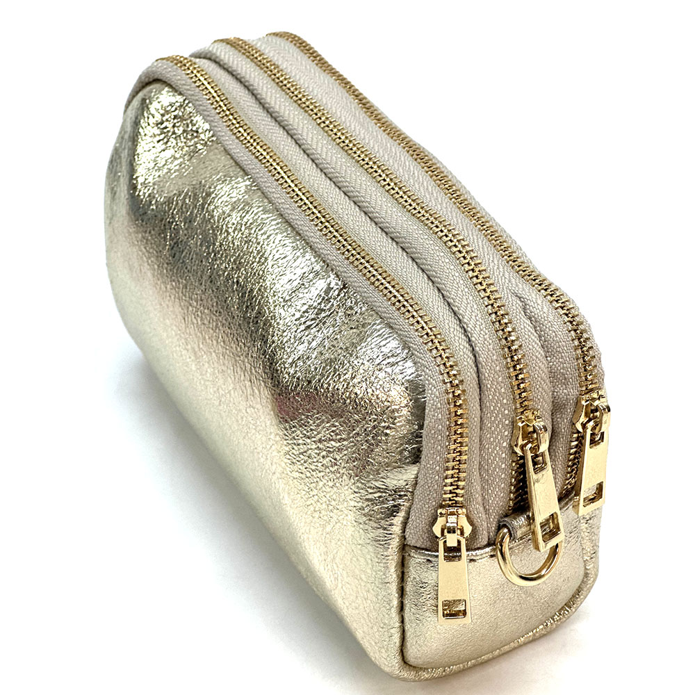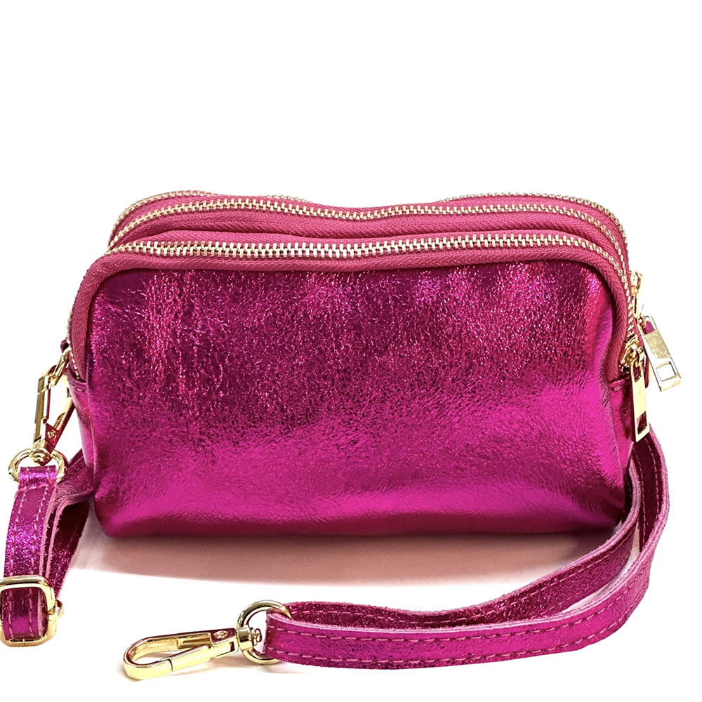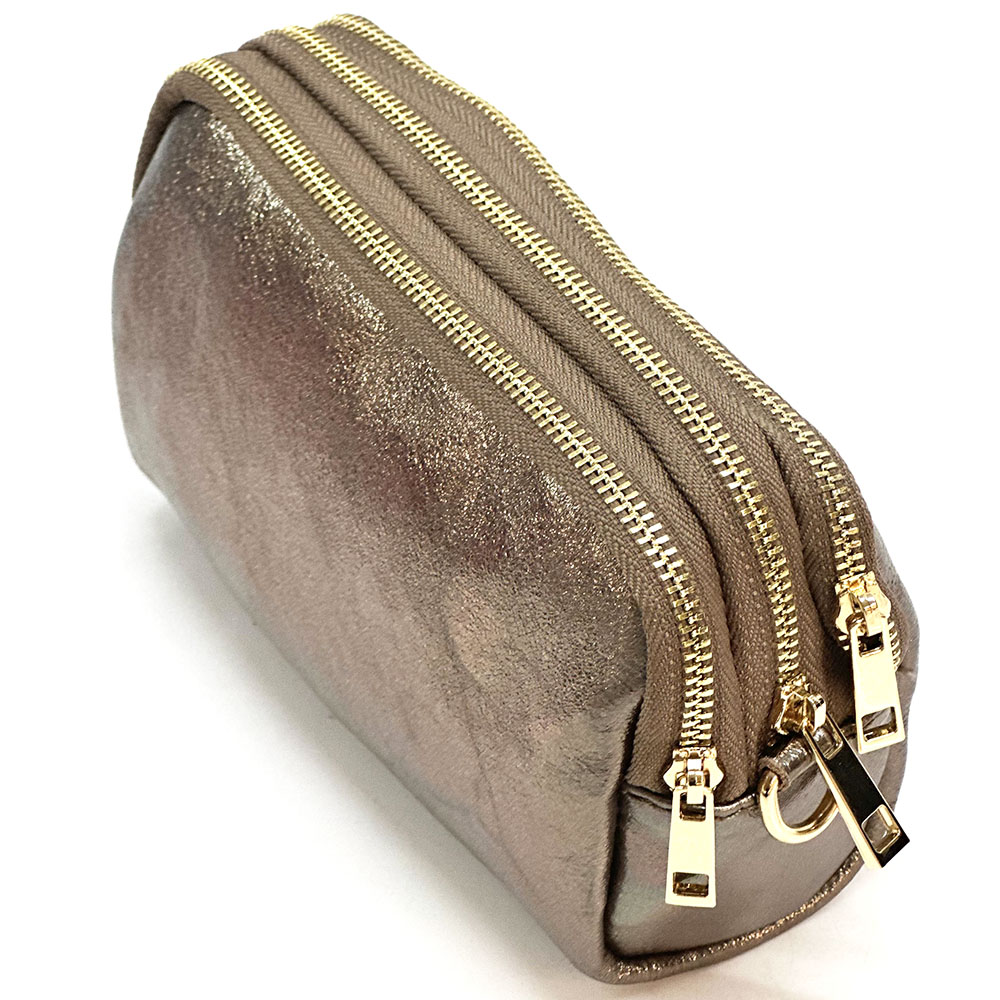 Fermeture principale avec zip. Une petite poche frontale, utilisable comme porte-monnaie, boucles d’oreilles, bagues….