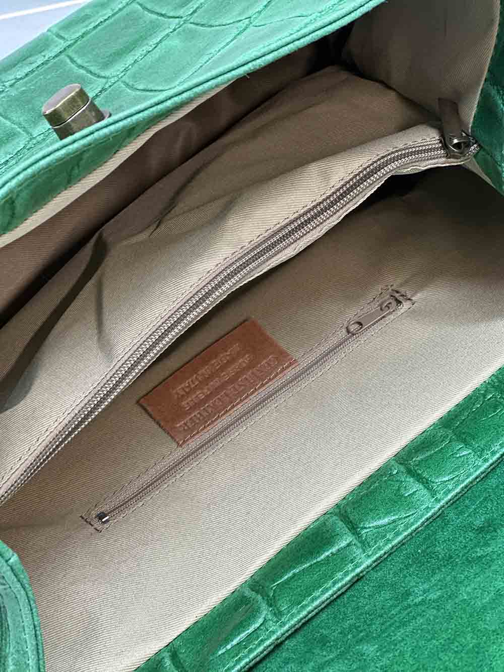 Grâce à son intérieur spacieux et bien organisé, le sac Natalina offre un espace suffisant pour transporter vos essentiels avec praticité et sécurité. Ses options de port polyvalentes permettent de le porter à la main, sur l’avant-bras ou en bandoulière, s’adaptant ainsi à toutes les occasions.